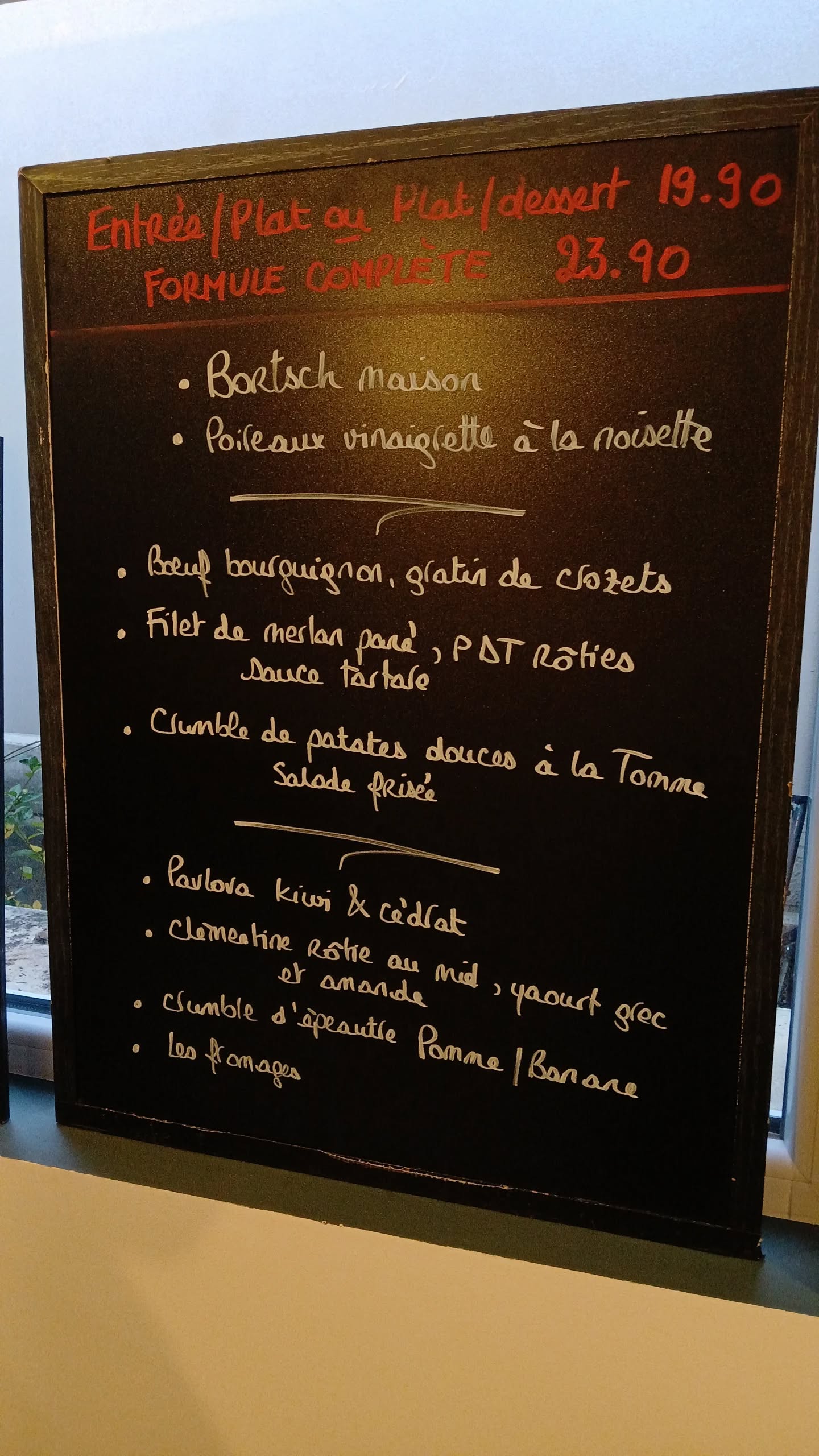 Pas de carte, juste une ardoise qui change chaque matin