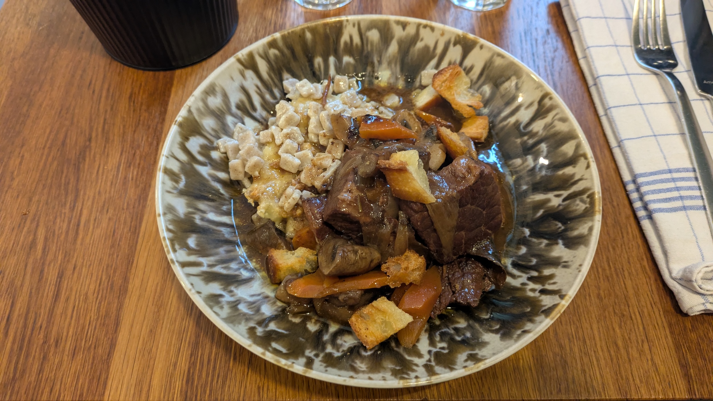 - Bœuf bourguignon, gratin de crozets